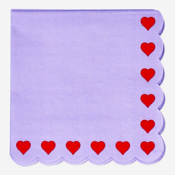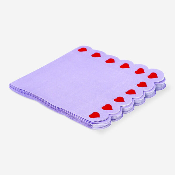 Enhance your dining experience with these charming purple napkins, each adorned with scalloped edges and heart designs, adding a touch of love to your table setting. Perfect for any mealtime gathering, these 3-layer napkins measure 12×12 cm when folded, ensuring both functionality and style as essential table wipes for your next gathering.