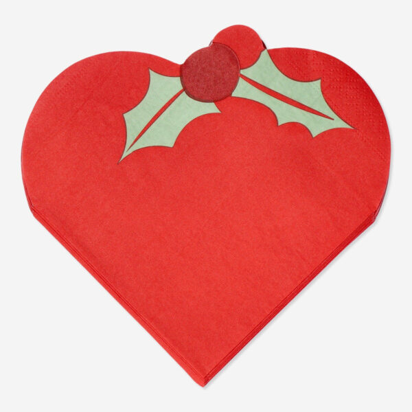 Decorate your party table with our heart shaped napkins! This set includes 16 napkins, each measuring 18.5 x 16.5 cm. The napkins are 3 layers thick and feature a Christmas heart design.