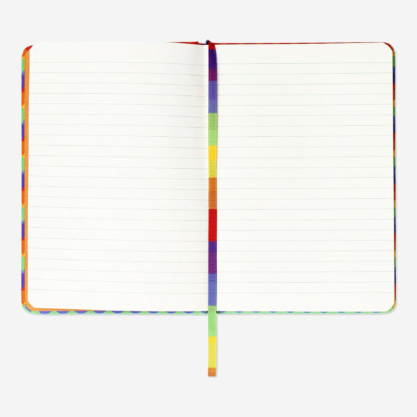Jot down your thoughts and dreams in this A5 hardcover notebook, adorned with a cheerful pride-inspired design. It contains 80 sheets, perfect for writers and note-takers who love a splash of colour. Measuring 14.8 x 21 x 1.3 cm, it’s an ideal companion for both work and play.