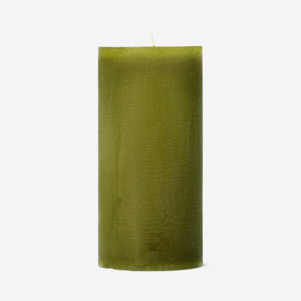 Introduce a calming, natural touch to your home with this olive green pillar candle, designed to offer both style and lasting glow. Crafted from 100 percent paraffin and featuring a cotton wick, it burns cleanly and evenly, providing approximately 35 hours of light. The rustic finish gives the candle a textured appearance that complements both modern and traditional interiors. With a height of 12 cm and a diameter of 5.7 cm, it is ideal for centrepieces, side tables or mantels. The green colour brings a grounding tone to your décor, making it a great choice for creating a relaxed atmosphere in any season. A simple way to elevate your candle collection.
