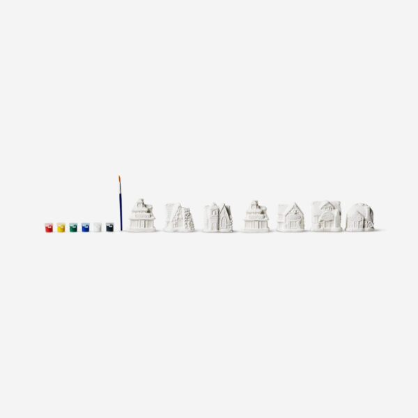 Unpainted ceramic figures for your own decoration. Measures approx. 7.5 cm in height each. Includes paint in 6 colours + brush.