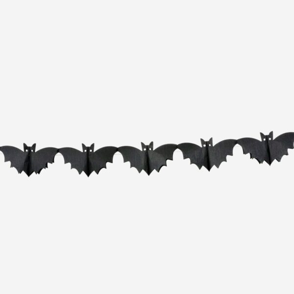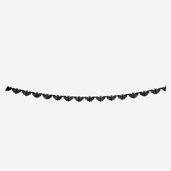 Set a spooky mood with this paper bat garland, ideal for Halloween celebrations. Made from black tissue paper, it stretches to 300 cm and features a row of wide-winged bats, creating a striking silhouette when hung across walls, windows or entryways. Lightweight and reusable, it is a simple way to enhance your space with festive charm. Whether you are decorating for a party or simply bringing a touch of the season into your home, this bat garland adds playful fright with minimal effort.