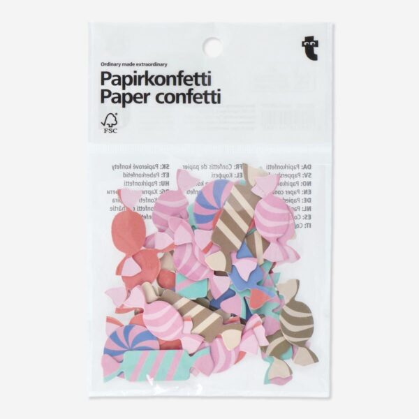 Candy-shaped paper confetti to pep up any party. The bag contains 5.6 g of colourful confetti made of FSC-certified paper.