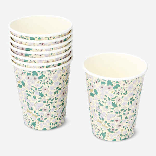 Sip in the spirit of spring with these paper cups, blooming with a vibrant flower print. Ideal for any party, these cups are 7.5 x 9.5 cm and disposable, ensuring hassle-free enjoyment. Please note they withstand up to a maximum of 23 degrees Celsius.