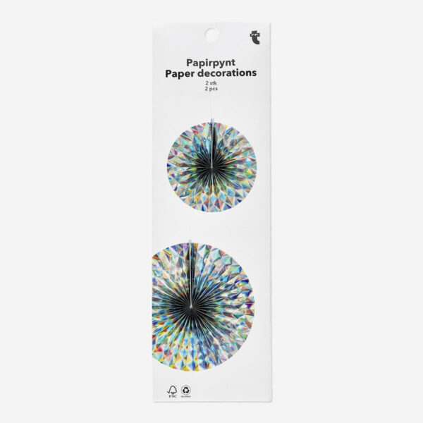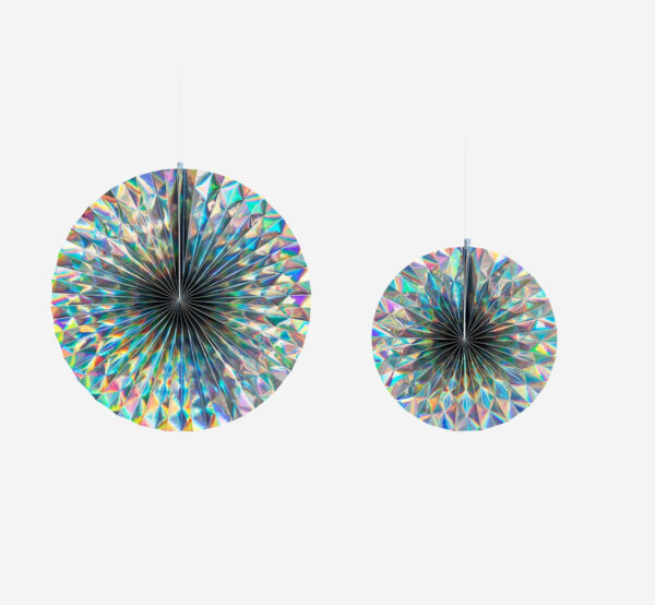 Dazzle your guests with these fold-out iridescent paper decorations. Each one unfolds to a generous 40 x 40 cm, capturing the light to add a magical sparkle to any celebration. This pack contains 2 pieces, perfect for creating a mesmerising display at your next party. Whether you’re aiming for a futuristic vibe or a fairy-tale enchantment, these decorations will add a touch of the extraordinary to your event.