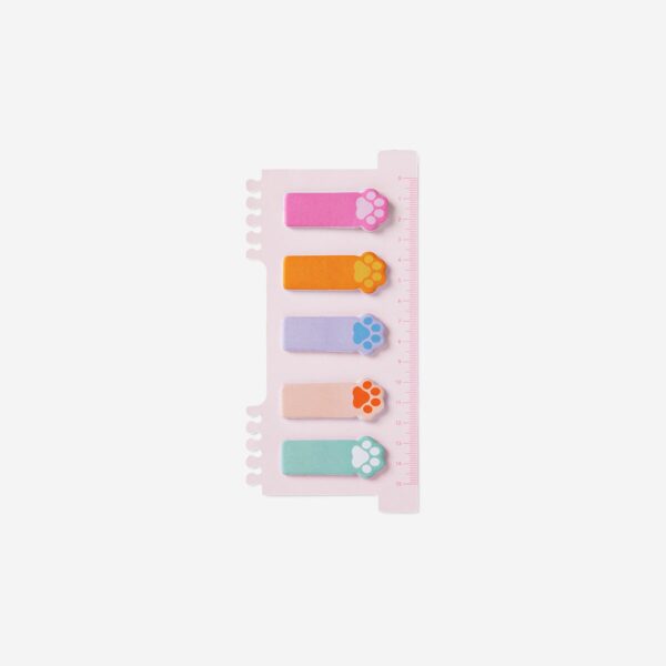 Stay organised with this adorable paw-shaped page marker set, conveniently attached to a ruler for easy use. Made from paper, these sticky tabs are perfect for marking important notes, pages, or documents while adding a playful touch to your stationery. The multi-coloured set features five different pastel shades, each with a cute paw print design. Measuring 8.5 x 17.7 x 0.3 cm, the compact design makes it easy to store in notebooks, planners, or pencil cases. The built-in ruler provides an extra practical feature for quick measurements, making it ideal for school, work, or home use. A great choice for animal lovers and those who enjoy fun and functional stationery.