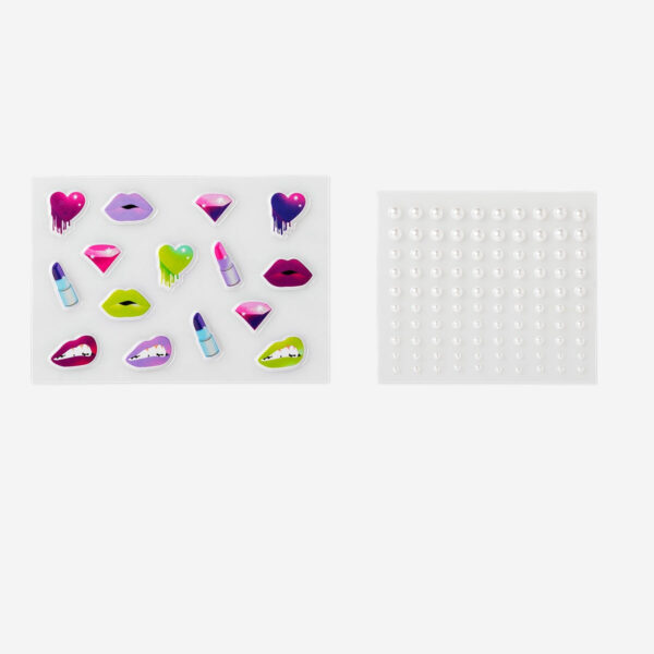 Add a touch of whimsy to your look with these pearl and sticker hair decorations. This set includes 100 colourful pieces, perfect for adding decorative accents to your hair and body. Measuring 13.8 x 18.8 x 0.5 cm, this sheet features a mix of pearls and fun stickers, including lips, hearts, and more. Ideal for special occasions or everyday flair, they are easy to apply and remove, allowing you to customise your style effortlessly. Enhance your beauty routine with these versatile and playful decorations, and make every day a little more fun and fabulous.