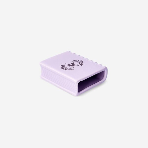 Add a literary charm to your workspace with this purple pencil holder designed to resemble a classic book. Made from ceramics and measuring 8 x 9.8 x 3.5 centimetres, it is a compact yet eye-catching addition to any desk or shelf. The detailed bow and leaf motif on the front gives it a delicate, decorative feel while keeping your pens, pencils or small accessories neatly in place. Whether placed in your home office, classroom or creative studio, this pen pot blends style with practicality, turning everyday organisation into a thoughtful display. A lovely choice for those who enjoy stationery with a touch of character.
