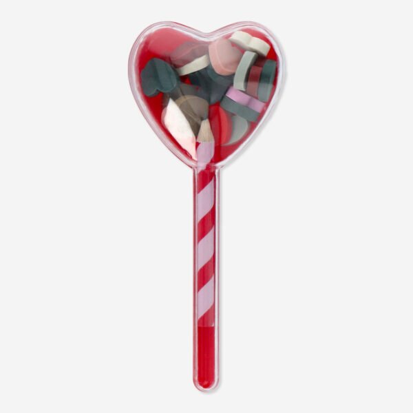 Add a touch of cuteness to your stationery collection with the pencil with erasers in heart box! Measuring 1.7 x 1.4 x 0.5 cm, this pencil set comes in a small heart-shaped box with different coloured erasers. It is a charming and functional addition to your workspace.