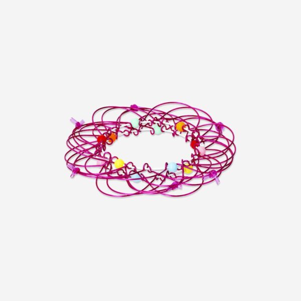 Add a vibrant twist to sensory play with this pink fidget bracelet. Crafted from flexible metal, it measures 10 cm in diameter and is designed to move seamlessly across your arm with a mesmerising motion. Decorated with colourful beads and a woven design, this bracelet not only serves as a fun gadget but also adds flair to your outfit. Lightweight and easy to carry, it fits comfortably on the wrist or can be used in hand as a dynamic, flowy toy. Perfect for fidgeting on the go, this playful piece combines entertainment with a touch of style.