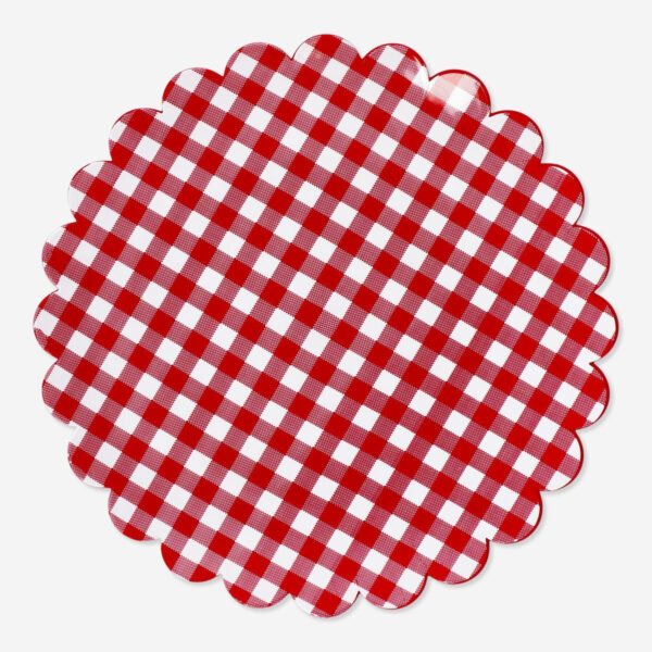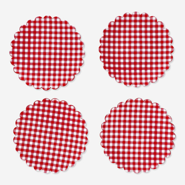 These charming red checkered plastic plates come in a set of four, each with a dimension of 21.7 cm in diameter. Perfect for picnics or casual dining, they add a classic touch to your meal presentation.