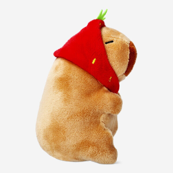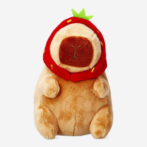 Bring home a cuddly friend with this plush capybara wearing a charming strawberry hat. Made from soft polyester, this adorable toy measures 8.6 x 14.4 x 7 cm, making it the perfect size for hugs and companionship. Its delightful design features a playful brown capybara adorned with a vibrant strawberry hat, adding a whimsical touch to its character. Ideal for capybara enthusiasts or anyone who loves unique soft toys, this cuddly friend is both comforting and endearing. Whether used as a toy or displayed as a cute decoration, it is sure to bring joy and warmth to your space. Add this lovable plush toy capybara with strawberry hat to your collection today.