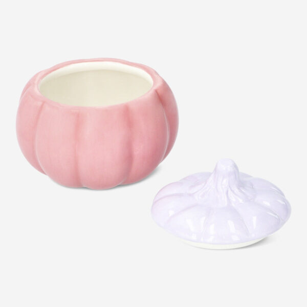 Add a touch of Halloween charm to your kitchen with the pumpkin candy jar. This small, pink ceramic jar, measuring 10.8 x 6.5 cm, is perfect for storing your favourite sweets and treats. The delightful pumpkin shape makes it an ideal sweets holder for the spooky season, adding festive flair to your decor. Whether you are hosting a Halloween party or simply enjoying some treats at home, this treat container is both practical and decorative. Keep your goodies fresh and accessible with this charming pumpkin candy jar, a must-have for any Halloween enthusiast.