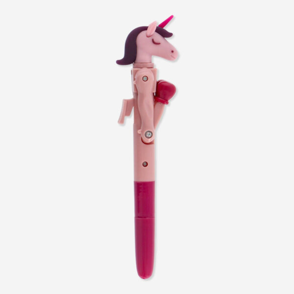 Make writing magical with the punching unicorn ballpoint pen. This whimsical pink pen features a cute unicorn design that delivers a playful punch with its tiny arms when pressed, adding fun to your writing tasks. Measuring 3 cm by 17.5 cm by 4 cm, it is perfect for both kids and adults who enjoy a touch of fantasy in their everyday items. Perfect for school, work, or as a charming addition to your pen collection.