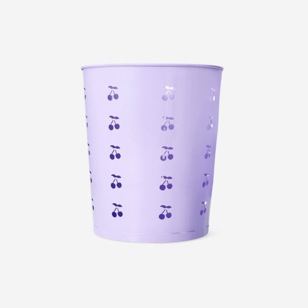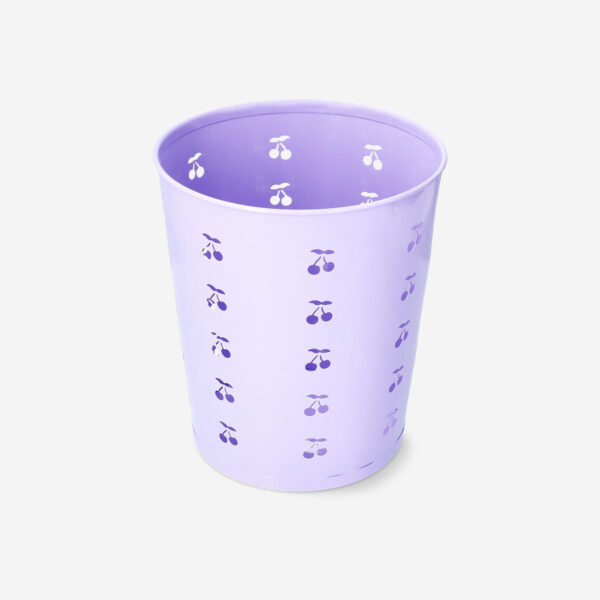 Add a touch of charm to your workspace with this purple bin with cherries. Crafted from metal, this stylish bin measures 21 x 24 cm, making it a practical and decorative addition to any office or home. Featuring intricate cutout cherry patterns, it combines functionality with eye-catching design, ensuring your waste disposal is both tidy and elegant. The metal construction is perfect for handling everyday office waste, while its unique purple finish and decorative details bring a playful yet professional vibe to your surroundings. Ideal for desks, study rooms, or creative spaces, this metal bin with cherry cutouts is as practical as it is appealing.