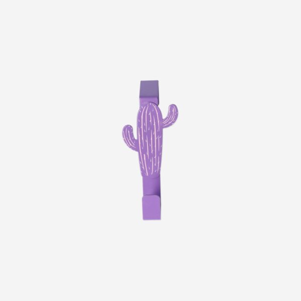 Add a pop of playful colour to your storage solutions with this purple cactus hook. Designed to hang neatly over a door, it offers a fun and practical way to organise towels, bags or accessories without the need for drilling or permanent fittings. Crafted from metal in a bright purple finish, this over-door hook features a charming cactus silhouette that brings a whimsical touch to any space. With dimensions of 12.3 x 7.5 x 1.8 cm, it is compact yet strong enough to hold up to 3 kg. Perfect for use in bathrooms, bedrooms or entryways, this decorative hook blends quirky design with everyday functionality. An easy and cheerful way to tidy up.