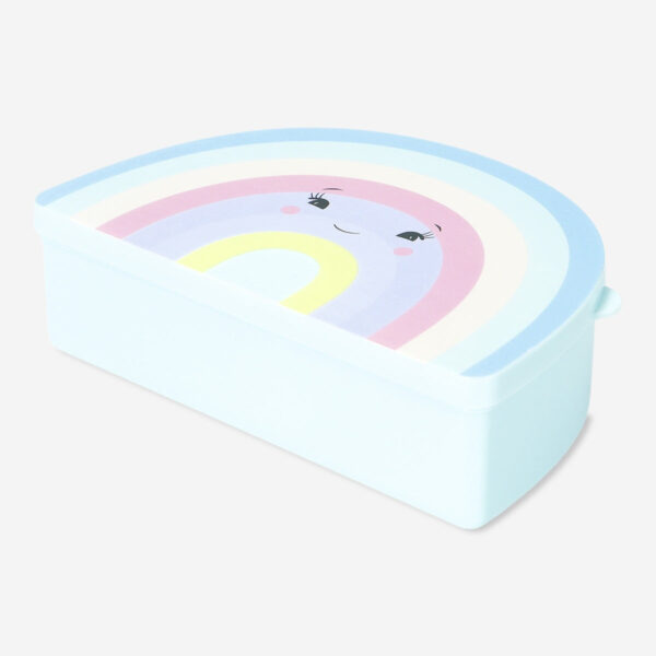 Pack your snacks in this adorable rainbow-shaped lunchbox, a delightful blend of practicality and style. In a soothing blue with a multi-colour design, it’s sized at 14.5 x 4.4 x 9.9 cm, perfect for carrying small meals or treats. Confirmed as food-safe and dishwasher-friendly, this lunchbox ensures mealtime is both fun and fuss-free. It’s a bright way to bring a piece of the rainbow with you every day.