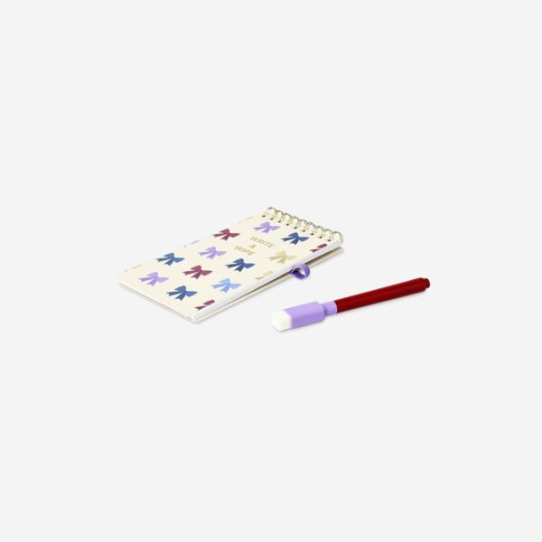 Stay organised while reducing waste with this reusable notebook and erasable marker set. Designed in a compact 8 x 15 x 1 cm format, it features a bow-themed cover that adds a splash of fun to everyday planning. The spiral binding allows for easy flipping, while the wipe-clean pages can be used again and again, making it ideal for jotting quick notes, lists or reminders. Included is a matching erasable marker with a built-in eraser for convenience. Made from paper and designed for repeated use, this clever notepad fits perfectly into your daily routine at home, work or on the move. A smart and stylish addition to any stationery selection.