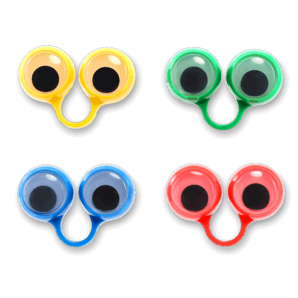 Add a touch of fun and creativity to your playtime with these colourful rings with rolling eyes. This set includes 4 rings, each featuring a unique pair of rolling eyes in vibrant colours. Perfect for imaginative play, these rings can transform your fingers into amusing puppets, sparking endless stories and adventures.