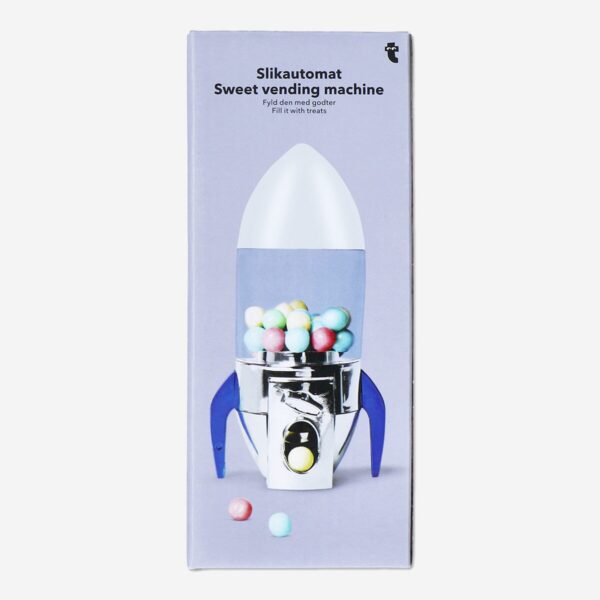 Add a playful touch to your space with this candy machine shaped as a rocket, perfect for dispensing your favourite treats. Designed in a sleek silver finish, this plastic vending machine brings a fun and nostalgic feel to any room. Measuring 11.5 x 20 x 7.5 cm, it is compact enough for desks, countertops, or kitchen shelves. Simply fill it with small sweets or gumballs and enjoy a classic vending experience at home. This decoration gadget is suitable for food, making it a great addition to parties or everyday snacking. Please note that contents are not included, allowing you to customise it with your preferred treats for a personalised candy-dispensing experience.