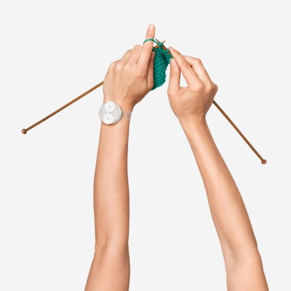 Digital row counter for knitting and crocheting. Can be strapped onto arm.