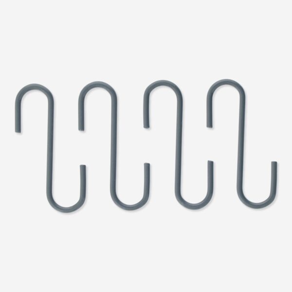 Organize your space with these versatile S-hooks! Made of durable metal and sold in a set of four, each hook measures 9 x 5 x 0.4 cm and can support up to 50 kg. The grey finish adds a sleek touch to any decor.