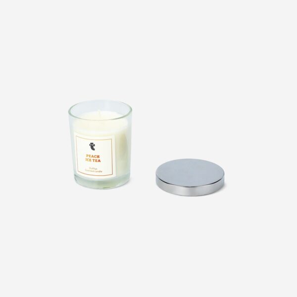Add a touch of freshness to your space with this scented candle in glass, beautifully infused with the uplifting scent of peach ice tea. Designed to create a soothing atmosphere, the candle is made from paraffin wax and comes in a sleek white colour that blends seamlessly with any décor. Measuring 6.9 x 7.4 cm, it is compact enough to fit on shelves, bedside tables or in the bathroom, offering a subtle yet continuous fragrance. The included lid keeps the scent sealed when not in use, making it easy to store. Ideal for relaxing evenings or adding a cosy element to gatherings, this candle is a charming way to refresh your home with a light, fruity aroma.