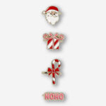 Celebrate the festive season in style with this charming set of Christmas earrings, beautifully presented in a striped gift box. The set includes four pairs of earrings crafted from metal, each pair featuring delightful holiday-themed designs such as Santa Claus, snowflakes, bows, and the words “Ho Ho Ho.” Each earring measures around 1.2 x 1.3 x 1.3 cm, making them the perfect size for a subtle yet festive statement. These earrings make a thoughtful gift for someone special or a fun addition to your own jewellery collection, adding a touch of holiday magic to any outfit.