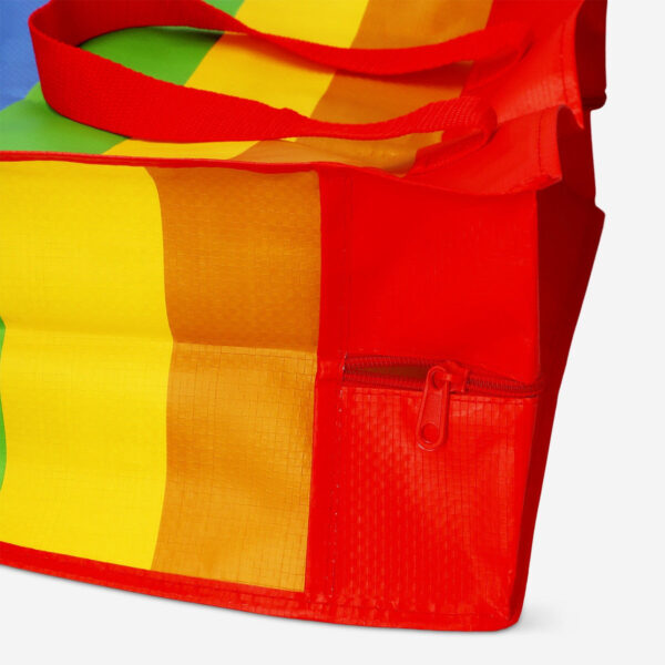 Carry your essentials in style with this vibrant shopper bag. Its bold rainbow stripes and durable design, sized at 44.5 x 37.5 x 17.5 cm, are crafted from polyester and recycled plastic. Practical and cheerful, it’s ready to tote up to 7 kg of your favourite finds.