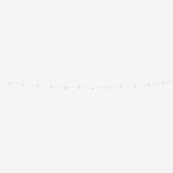 Decorate your home for Halloween with the festive string lights. The string light has 20 LED lights with spooky skulls. Uses 2 x AA batteries (not included). The string lights measure 220 cm in length.