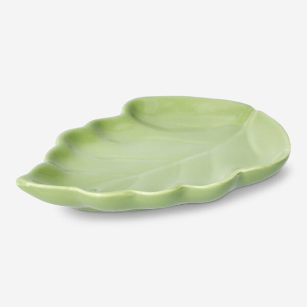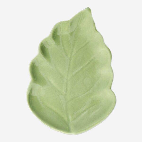 Enhance your dinnerware collection with this charming small leaf-shaped dish. Made from ceramics, this green serving plate measures 12.2 x 1.9 x 8.5 cm, making it perfect for serving snacks, appetizers, or holding small items. The elegant leaf design adds a natural and sophisticated touch to any table setting. Ideal for everyday use or special occasions, this versatile tray can be used as a decorative piece or functional dinnerware. Elevate your dining experience with this beautifully crafted leaf-shaped dish, perfect for adding a touch of nature-inspired elegance to your home.