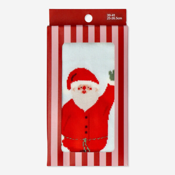 Embrace the holiday spirit with our socks in a green Santa design! These socks in size 39-41 are made of 36% polyester (56% recycled), 61% cotton, and 3% elastane.