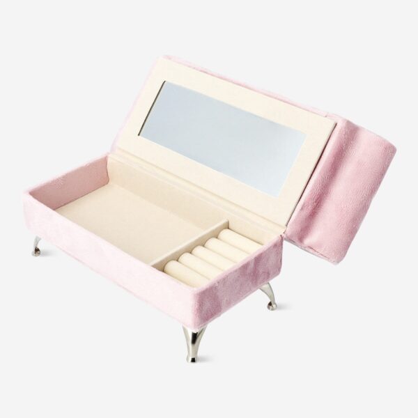 Organise your jewellery in style with this charming sofa-shaped velvet jewellery storage. Measuring 24 x 15 x 9 cm, this elegant light pink jewellery box features a plush design, complete with heart-shaped cushions. Perfect for placing on your vanity, this velvet sofa provides compartments to neatly store your rings, earrings, and other small treasures. The luxurious velvet finish adds a touch of sophistication to your vanity or dresser, while the compact design ensures it fits seamlessly into your space. Elevate your home decor and keep your jewellery beautifully displayed with this delightful velvet jewellery storage.