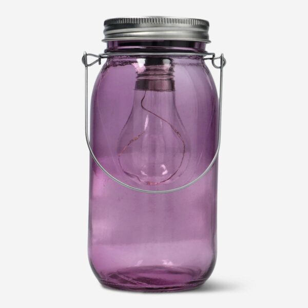 Solar-powered lantern with LED light. Measures 18 x 8.5 cm. Uses 1 x AAA battery (Not included). Available in more designs.
