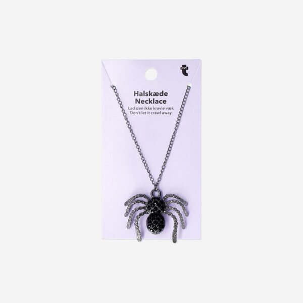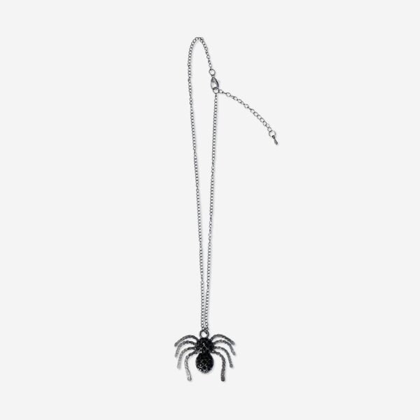 Add a creepy-cool twist to your Halloween look with this silver spider necklace. Featuring a bold pendant that measures 4,5×3,5×1 cm, the design showcases a large spider encrusted with hematite-toned stones for a shimmering yet eerie effect. The chain and pendant are both crafted from metal, making them perfect for spooky gatherings, themed events, or adding a touch of Halloween drama to everyday outfits as this accessory captures the charm of gothic jewellery with a playful twist. Whether worn alone or layered with other pieces, this statement necklace offers a striking finish that is sure to crawl its way into your seasonal favourites.