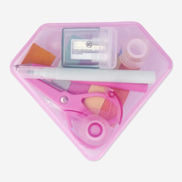 Keep your desk organised and stylish with this compact stationery kit, neatly stored in a diamond-shaped box. Measuring 10.2 x 8.6 x 3 cm, this multi-coloured kit includes all the essentials for school, work, or personal projects. Inside, you will find scissors, sticky notes, tape, a pencil, sharpener, eraser, and more. Perfect for students or professionals, this set is designed for quick access to everyday office supplies, helping you stay organised and prepared. The unique diamond-shaped case adds a touch of personal style to your workspace, making it both a practical and fashionable addition to your desk organisation tools. A great gift or personal treat for anyone looking to brighten up their study tools.