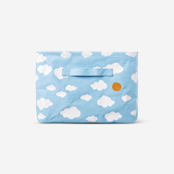 Organise your things and decorate your home with the blue storage basket with cloud print. The storage basket is made of cotton and polyester that are recycled. The storage basket measures 20.5 x 28 x 28 cm.