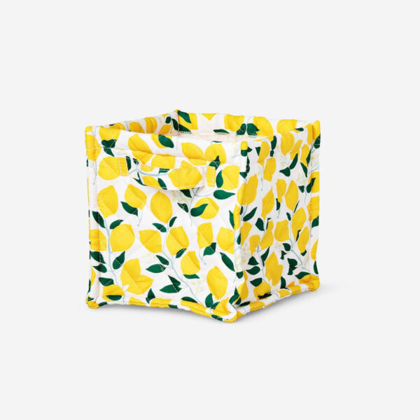 Brighten up your space with this delightful lemon-print storage basket, a zesty solution for tidying away your bits and bobs. Measuring a handy 20 x 20 cm and featuring a charming quilted design, it’s a cheerful addition to any home, capable of holding up to 2 kg of your treasured items. Bring a touch of summer to your storage solutions today with our lemon-print storage basket.