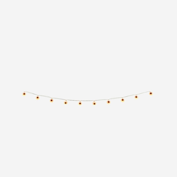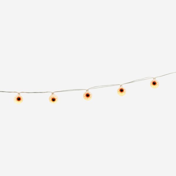 Decorate your home for Halloween with the festive and spooky string light. The string light has 10 LED lights looking like eyeballs. Uses 2 x AA batteries (not included). Measures 285 cm in length.