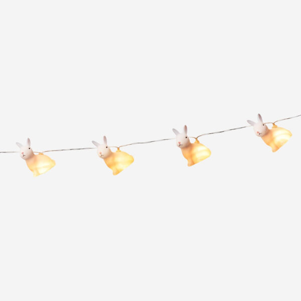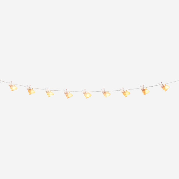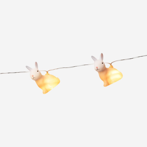 String lights with 10 LED lights. Measures 285 cm. Can be used outdoors. Uses 3 x AAA batteries (not included).