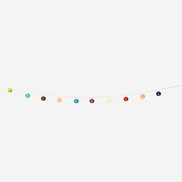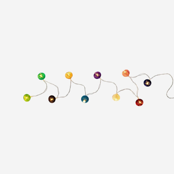 Bring a warm and cosy ambience to any space with these beautiful string lights. Featuring 10 LED lights adorned with metal balls in various colours, these lights are sure to add a touch of whimsy to your decor. Measuring 240 cm in full length and powered by 2 AA batteries (not included), they’re perfect for any room or occasion.