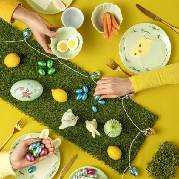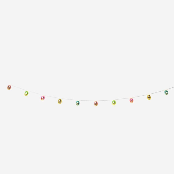 Create cosiness and decorate your home for Easter with the beautiful string lights with coloured egg-shaped disco balls. The string lights have 10 LED lights and use 2 x AA batteries (not included). The string lights measure 285 cm in length.