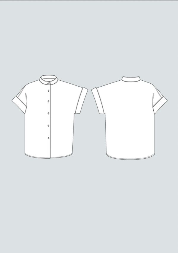 With a timeless aesthetic the Cap sleeve shirt is easy to style and wear. It has a straight, wide shape and features cap sleeves with a fold and a standing straight collar.