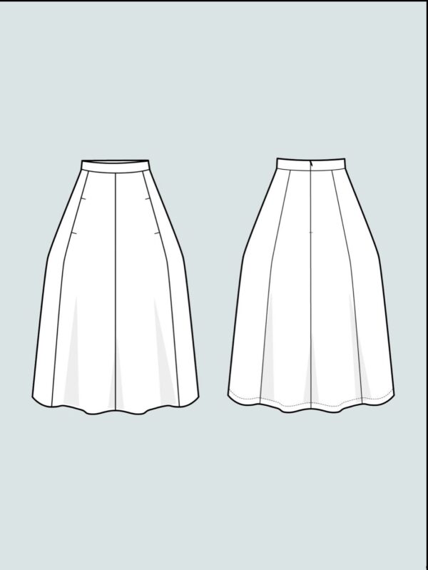 • Suggested Fabrics: Suggested fabrics are light to mid weight fabrics such as denim, cotton drill, linen, stretch cotton sateen fabric, needle corduroy, wool suiting, lightweight tweed, viscose. The black skirt is sewn in a wool suiting fabric.
