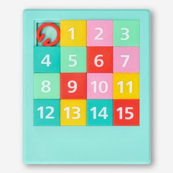 Slide the numbered tiles into the right order in the tilt puzzle. The game measures 10.8 x 8.9 cm.