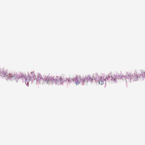 Deck up your party space with this purple tinsel garland! Stretching 200 cm, it adds a holographic sparkle to any occasion. Use it as a hanging decoration or to adorn your Christmas party table. This tinsel garland brings a pop of colour and festive joy to your celebrations. Elevate the party ambiance with this eye-catching garland!