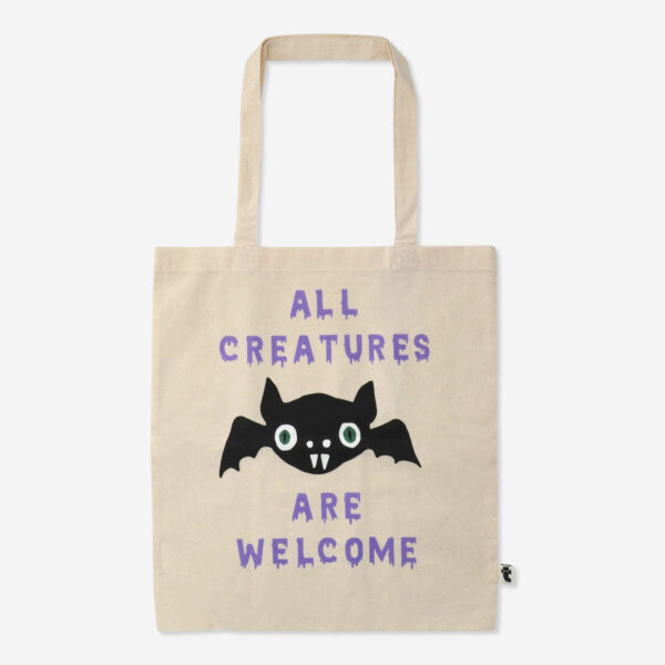Carry your Halloween spirit with our canvas tote bag. Measuring 37 x 41 cm, this cotton bag features a bat and text design, perfect for the spooky season. Whether you are trick-or-treating or running errands, this Halloween-themed tote bag is the mix of a stylish and spooky choice.