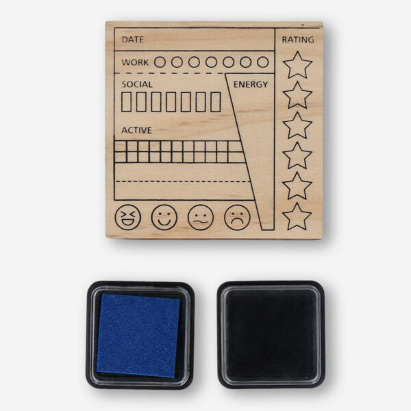 Wooden tracker stamp for journaling your daily mood. Measures 6.5 x 6.5 cm.