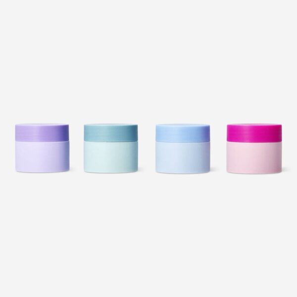 Stay organised while travelling with this set of four multi-coloured travel containers. Each jar measures 4.6 x 3.8 cm and has a 20g capacity, making them ideal for storing creams, lotions, or other personal care items. Made from plastic, these containers feature secure top lids to help prevent spills during transit. The set includes a convenient bag for easy storage and transportation, along with stickers for labelling, allowing you to keep track of the contents of each jar. Whether for cosmetics or toiletries, these travel accessories are practical and compact, ensuring you pack light and efficiently. Perfect for travel or daily organisation needs.