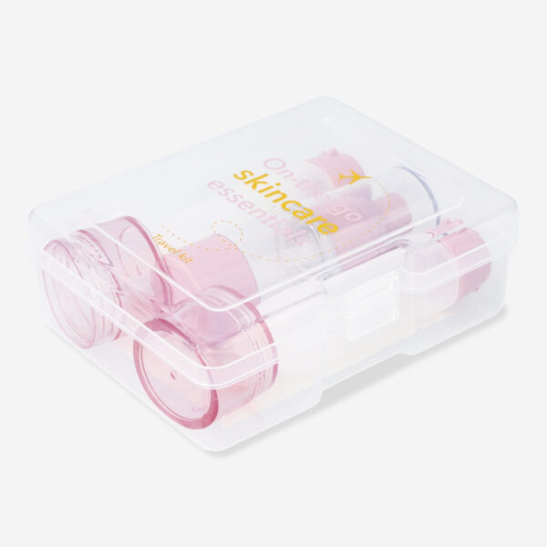 Keep your skincare routine intact while travelling with this convenient travel set. This 5-piece collection is designed for skincare on-the-go, featuring essential bottles for face care packed neatly in a compact box. The set includes different-sized containers perfect for creams, lotions, or serums, ensuring you have everything you need to maintain your beauty regimen during your travels.
